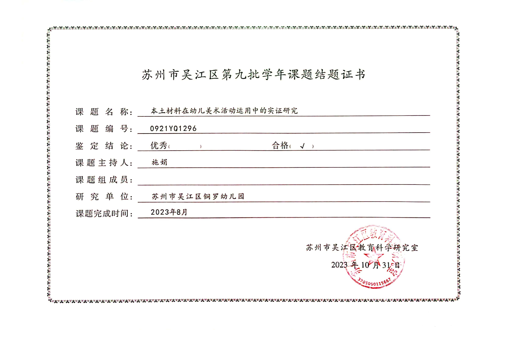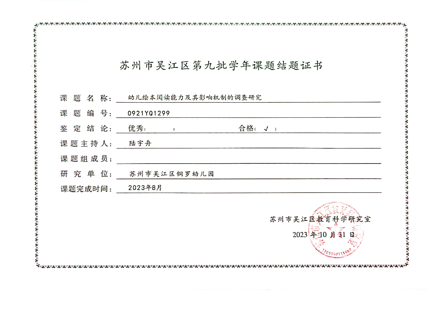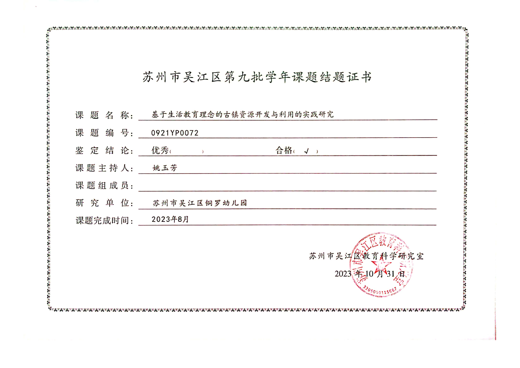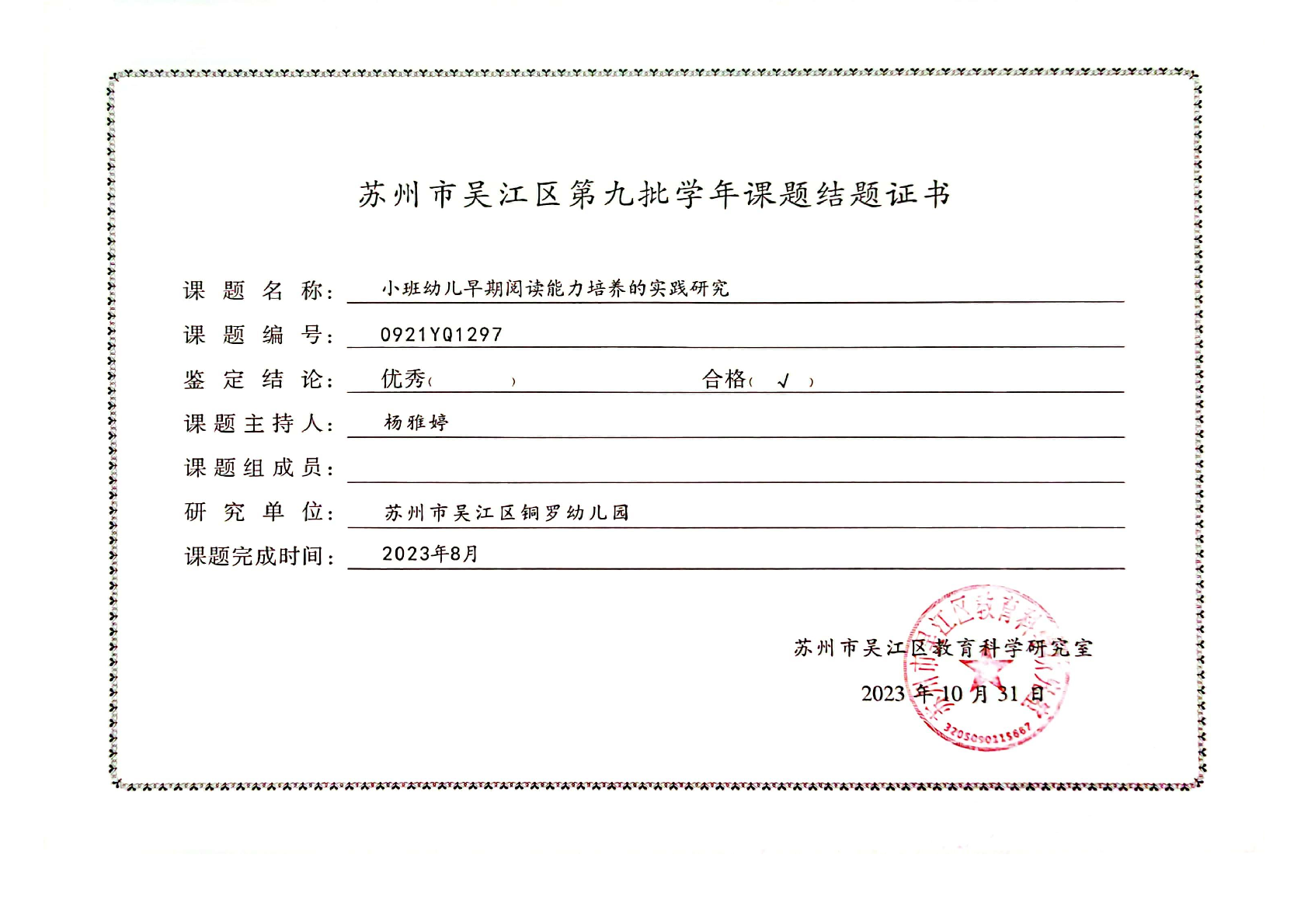 课题研究是教育科研的重要载体,是幼儿园不断革新、积淀成果、提升品质的重要核心工作。学年课题研究能更聚焦教育教学工作中的实际问题,进一步加强教师的教科研能力,在区第九批学年课题研究期间(2021年9月至2023年8月),教师们积累经验,梳理资料,进行交流和共享,幼儿、教师都获得了成长。本次课题结题工作已顺利完成,1项学校专项课题、7项青年教师专项课题、2项普通学年课题都已顺利结题。