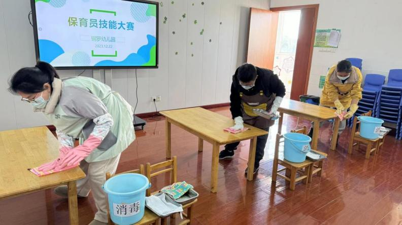 冬季是传染病高发季节,清洁消毒工作是减少疾病发生和防止传染病传染的有效措施。为了进一步落实保教并重的原则,规范保育员的日常消毒管理操作,保证卫生消毒工作精细化、程序化、规范化,提高保育水平,我园于2023年12月22日,开展了保育员“桌面规范消毒”专项技能比赛。