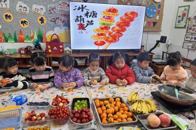 迎新年庆祝活动现场热闹非凡,弥漫着浓厚的节日氛围:小班幼儿拿起印章,蘸上颜料,印画出红彤彤的年宵花、五彩的烟花,渲染出新年红红火火的氛围;中班幼儿画画、剪剪、贴贴,制作出形态各异的生肖龙,预示新的一年欣欣向“龙”;大班幼儿写“福”字、画新年愿望,制作出一棵棵红红火火的“新年树”……还有节目表演、自制甜蜜糖葫芦,幼儿许下了新年愿望,预祝2024年平平安安、红红火火、大吉大利、“莓”有烦恼......