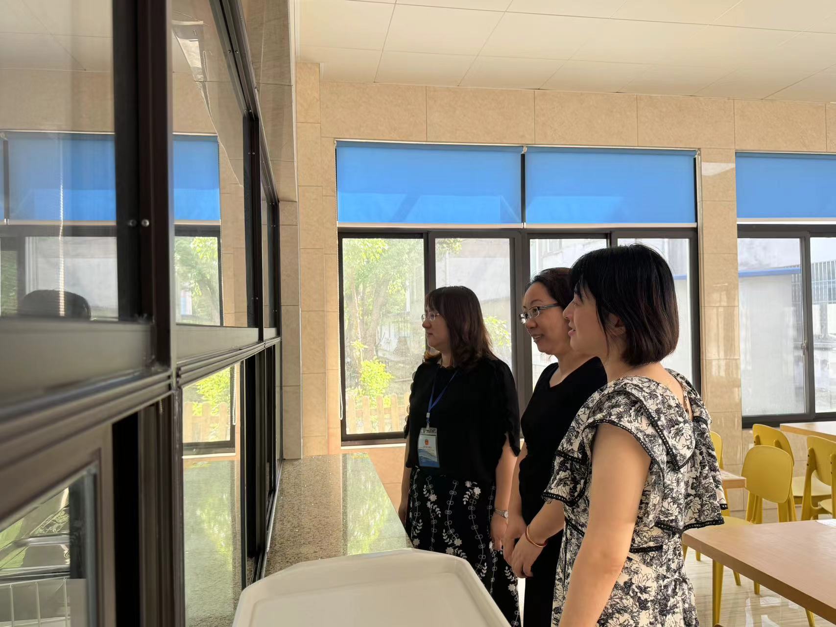 督学在园领导的陪同下,来到我园食堂进行实地指导检查,重点对食材配送、食品加工、食材储存、食堂人员健康档案、食品留样规范等方面进行认真查看,并对消毒设备、明厨亮灶等设施进行现场检查。