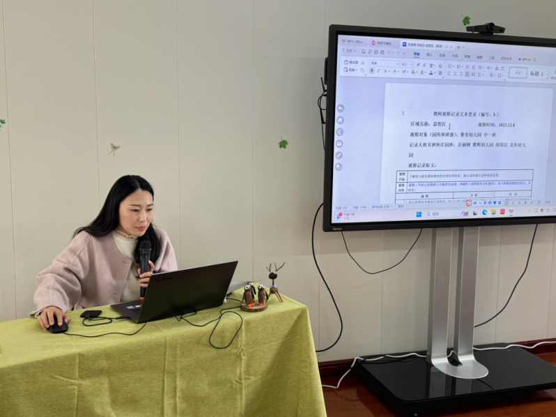 主持人介绍了前期区域观察文本资料梳理的进度,汇报了各园已修改观察记录的数据后就进入了本次活动的主题——案例分享与专家指导。各园代表分享了自己园所在修改观察记录案例时的所行所思,分享了自己的的收获,也提出了修改过程中遇到的问题、困惑。