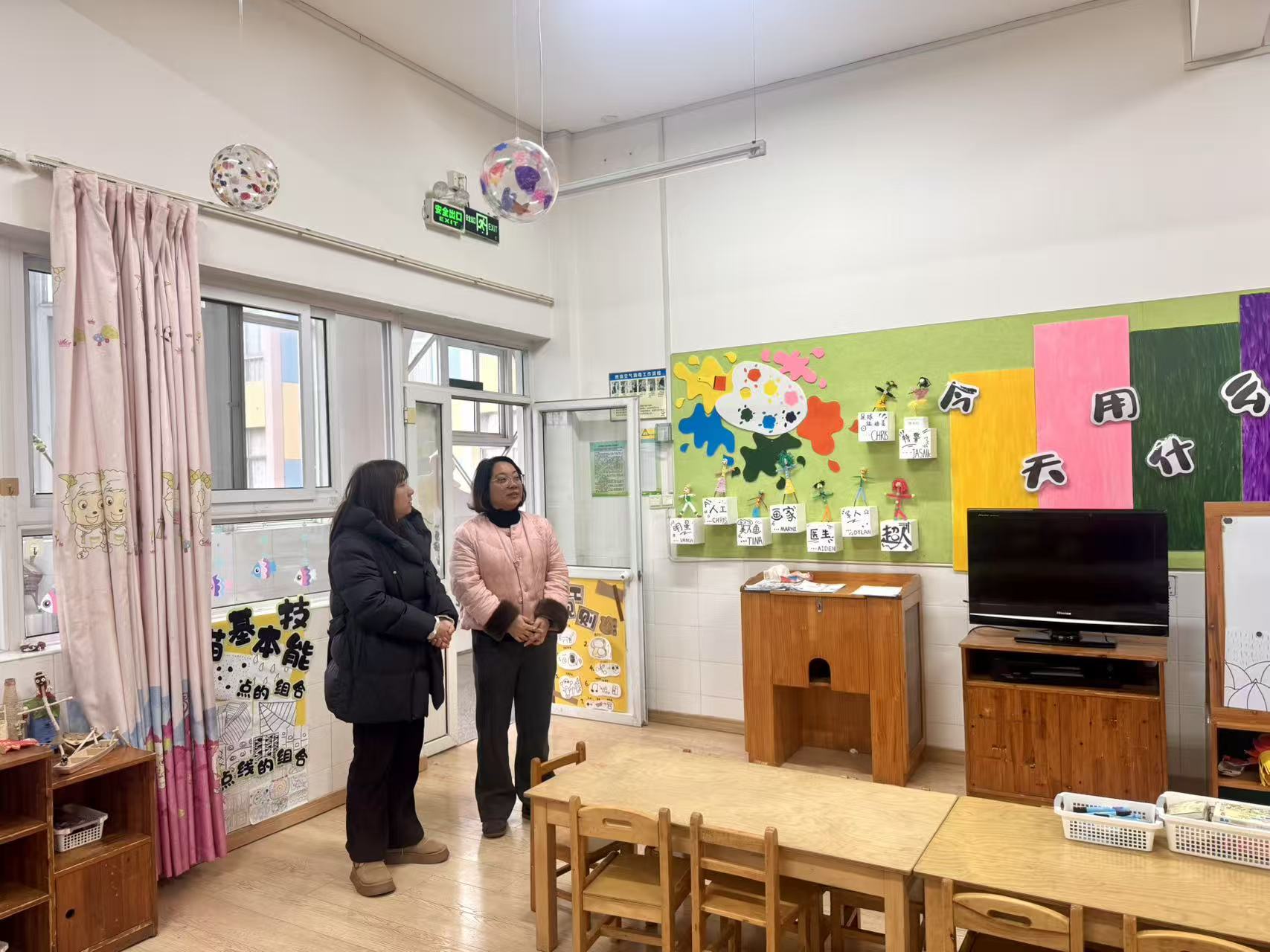 督导组在姚园长的陪同下实地查看了幼儿园的整体环境,走访了幼儿园活动室、户外游戏区、美术专室等场所,重点检查了保教环境创设、校园安全管理等核心工作。